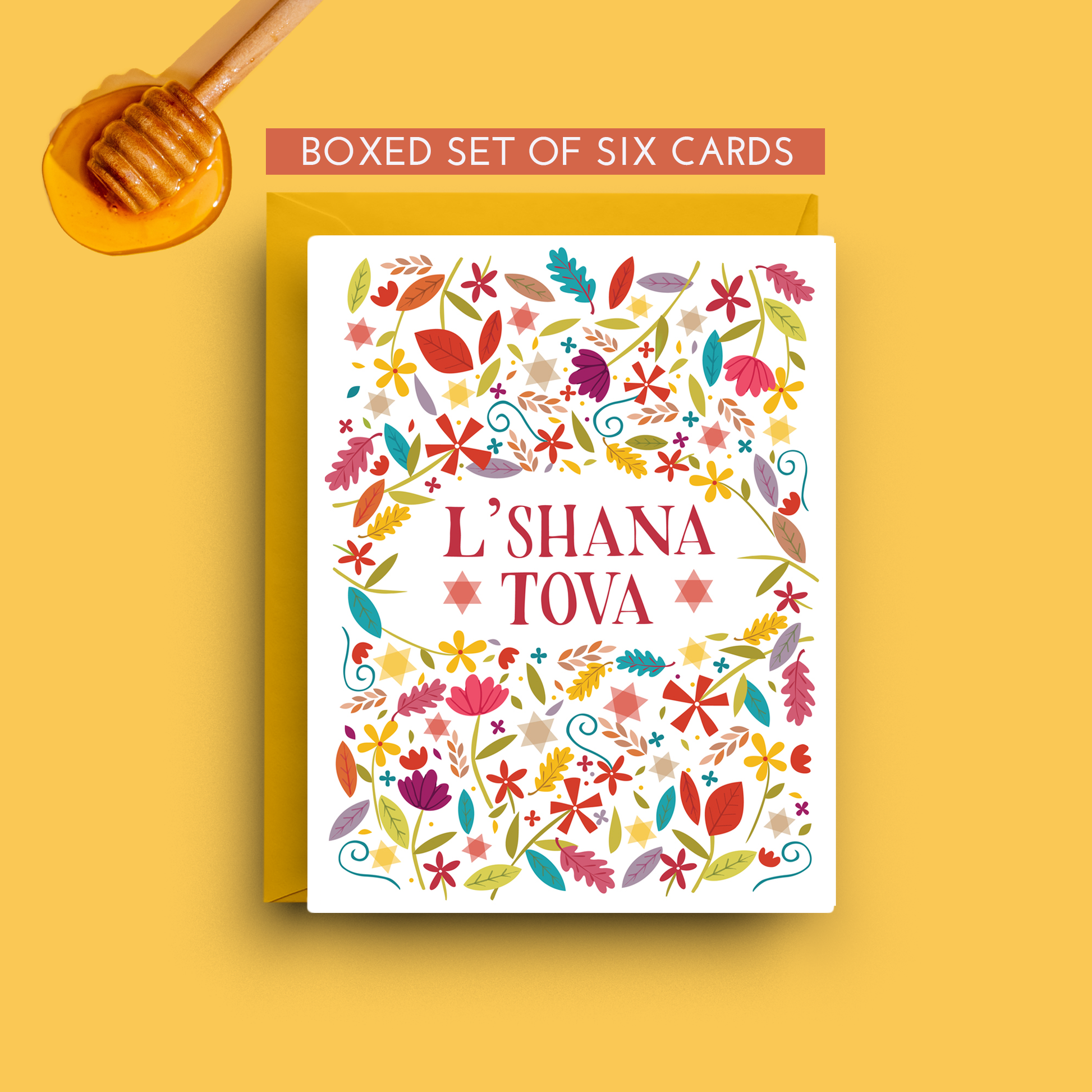 Celebrate the Jewish New Year and the enchantment of autumn with our "Rosh Hashanah L'Shana Tova Boxed Set of 6 Floral Cards." Each card in this meticulously crafted set features a unique, hand-drawn floral design that embodies the spirit of renewal and heartfelt greetings. Perfect for Rosh Hashanah, Thanksgiving, and all your fall celebrations.
