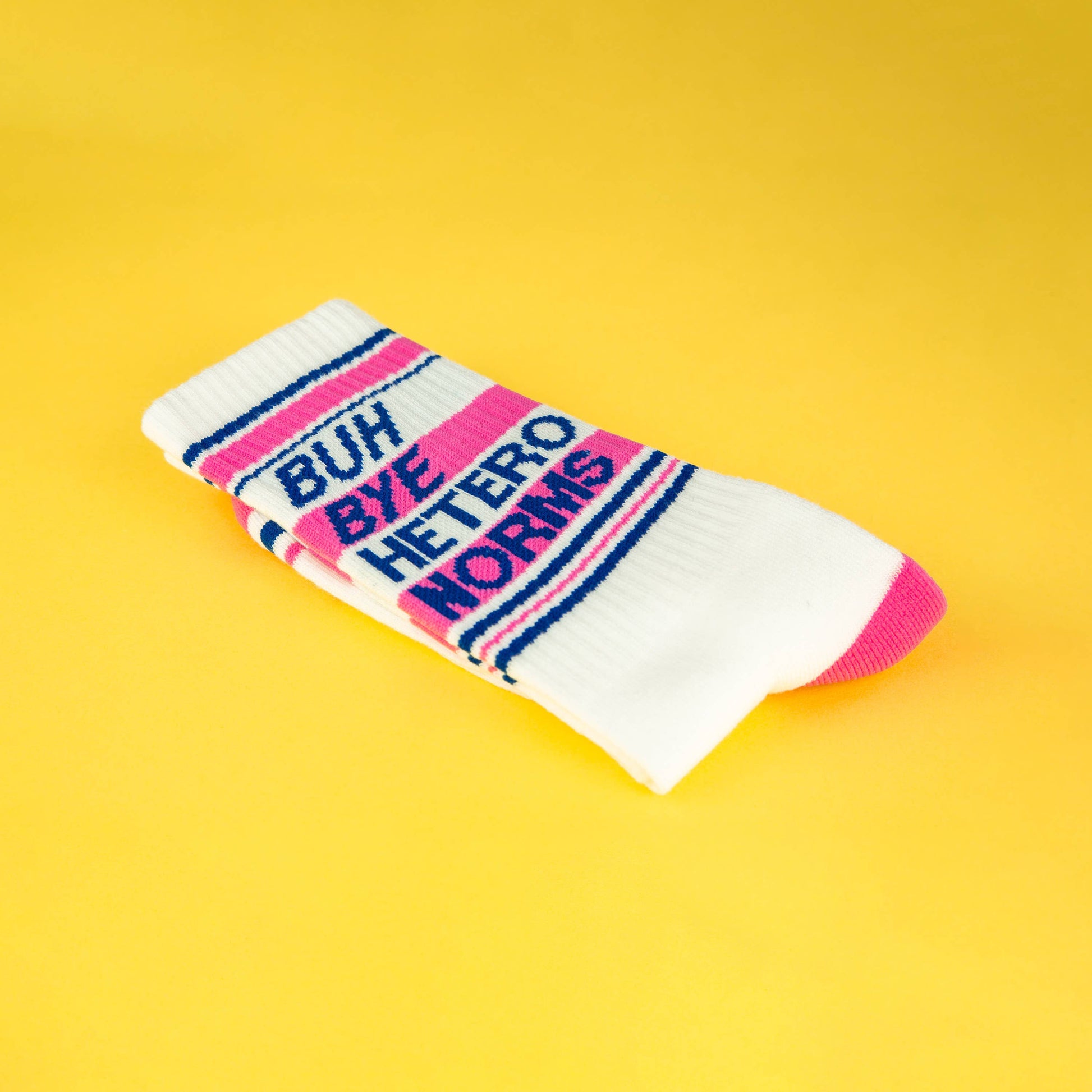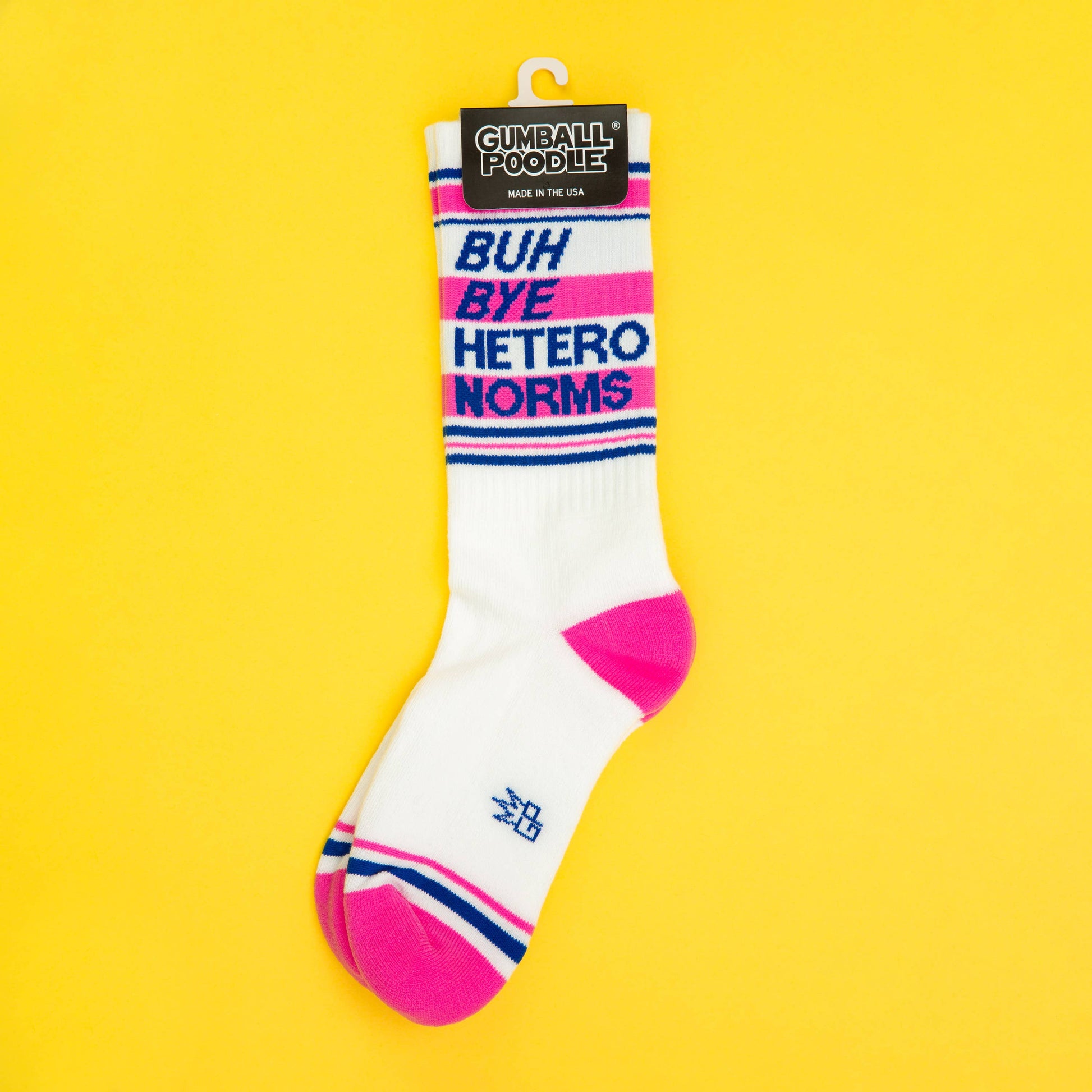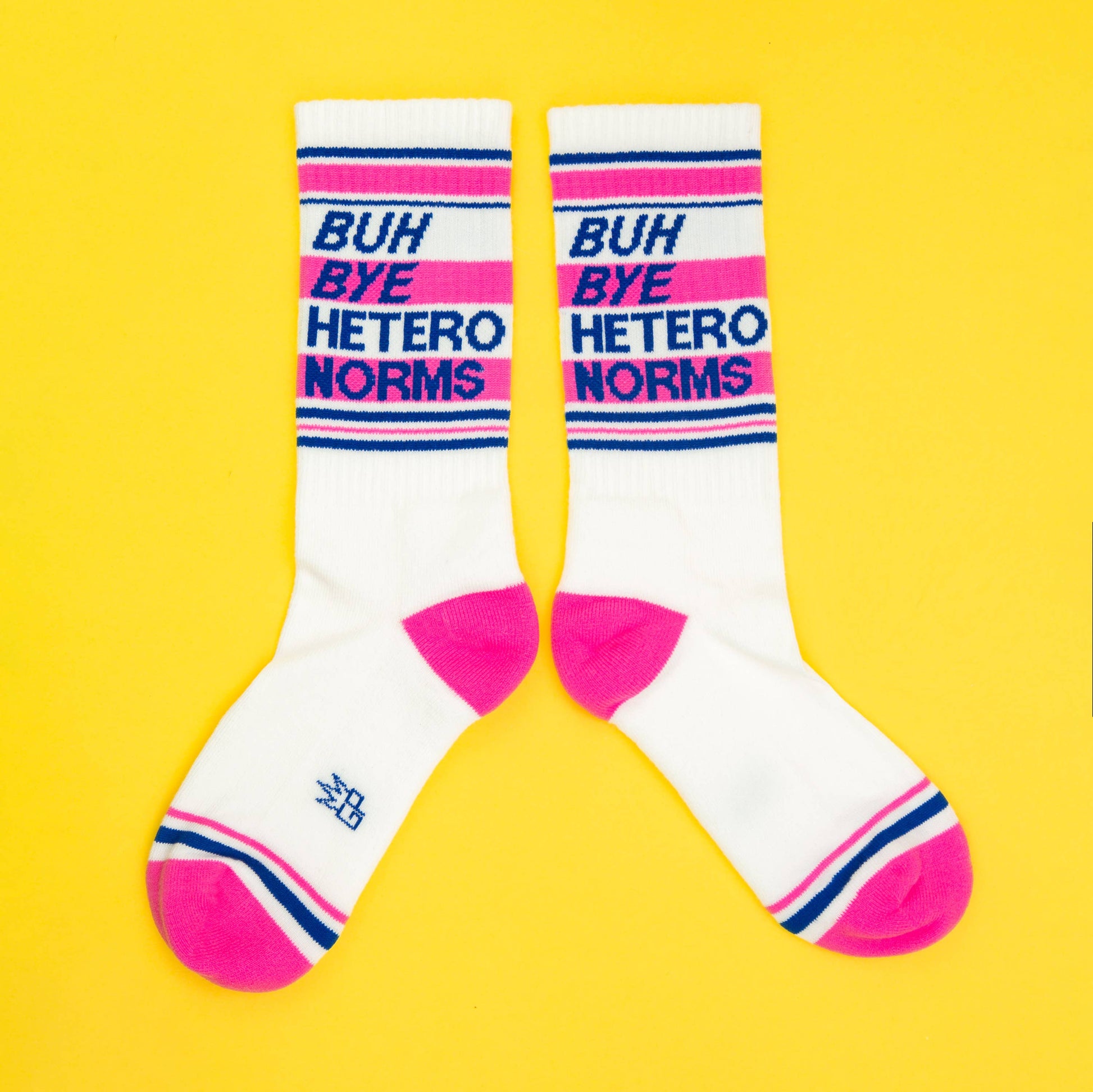 Wave away the junk you don't need with our BUH BYE sock collection π! Hetero norms aren't normal for a lot of us. What is "normal" anyway? Queer up your life in comfort and style in these high fashion, high-minded gym socks.