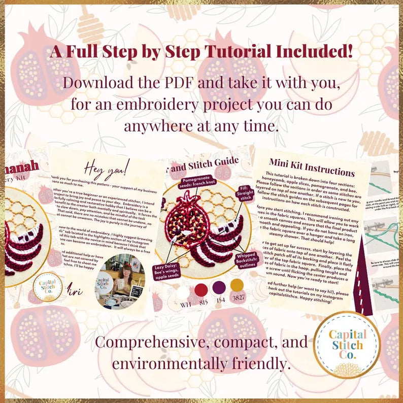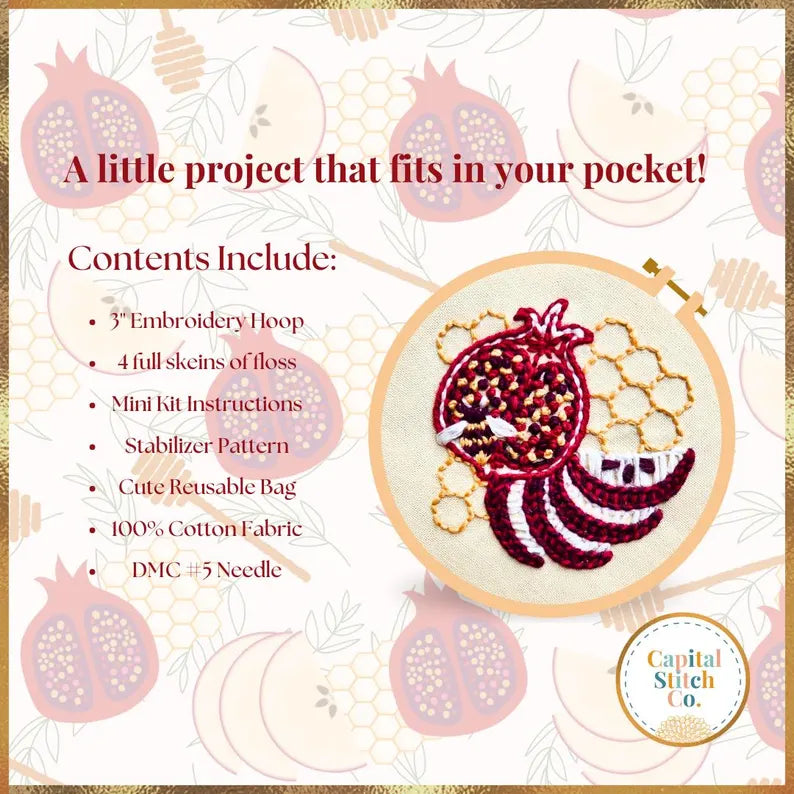 Crafted by a local DC embroidery artist, this kit is the perfect way to learn some embroidery skills and make a beautiful gift or display piece for Rosh Hashanah.