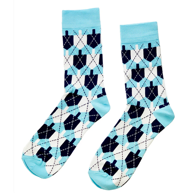 Start Hanukkah off on the right foot with these fun and festive argyle-print dreidel socks!