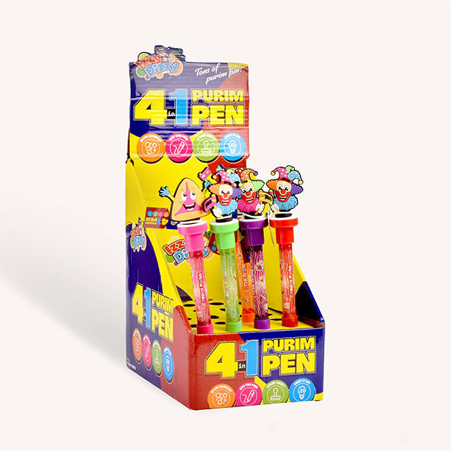 From Ner Mitzvah, a trusted name in specialty items for over 60 years, comes the Purim 4 in 1 Pen. This unique novelty item is not just a pen, but a conversation starter that brings a touch of fun to any setting. Ideal as a party favor or a gag gift, it adds a playful twist to your writing needs. As with all Ner Mitzvah products, you can trust in its quality and safety, bringing joy and laughter to homes worldwide.