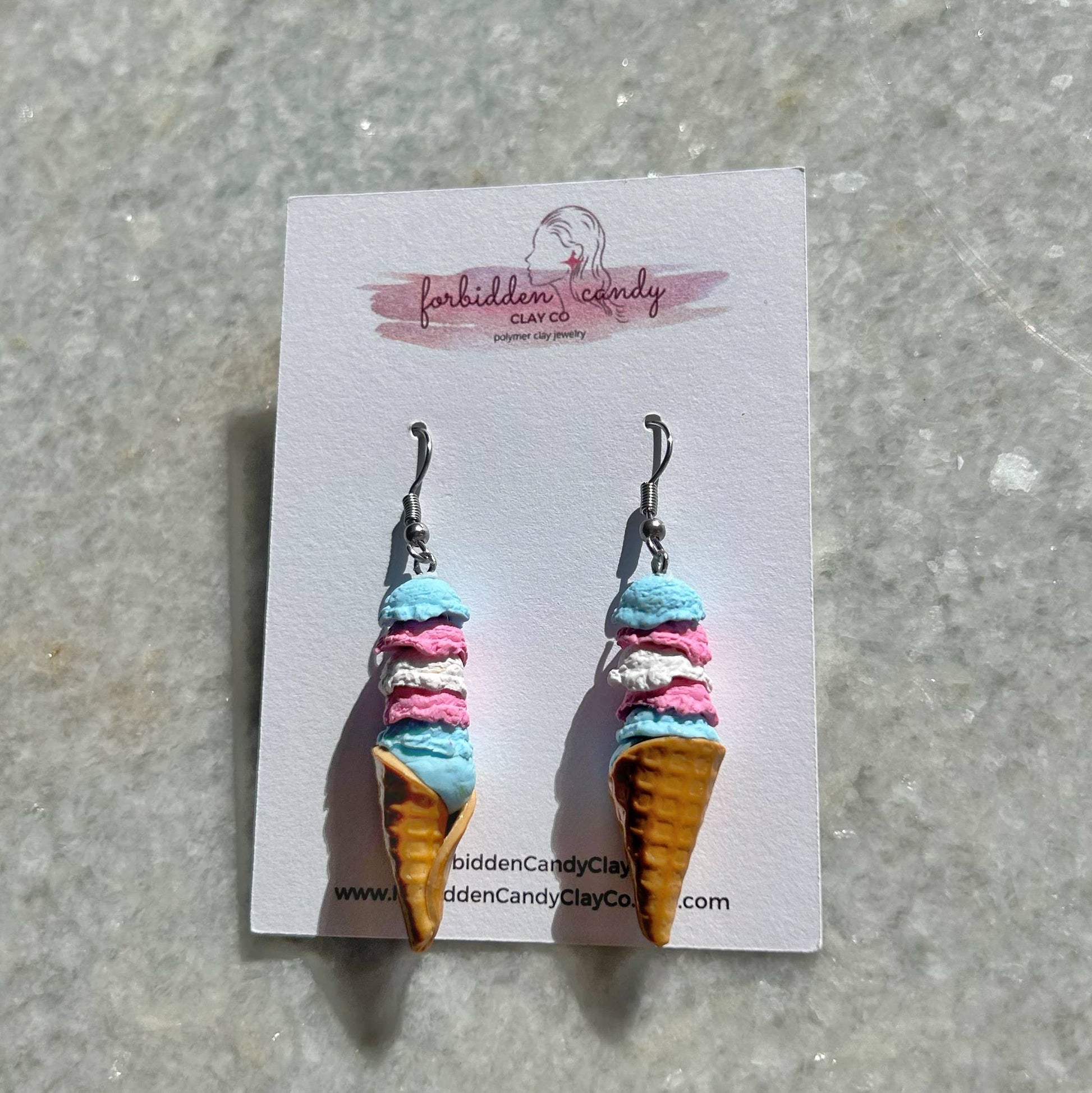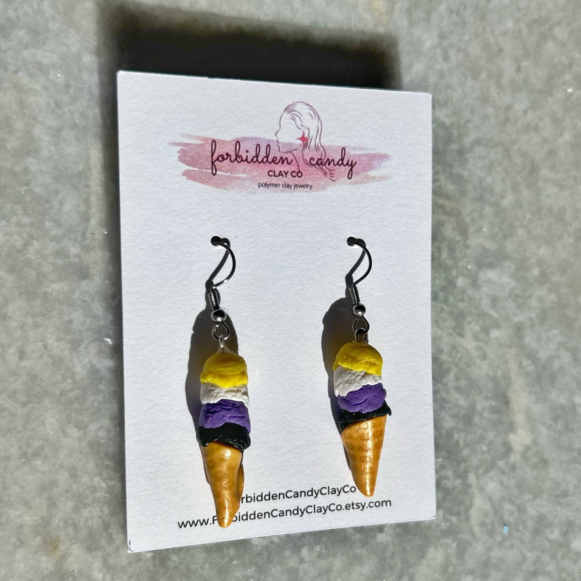 Lightweight, handmade pride ice cream cone earrings! Inspired by the colors of the pride flags, these little ice cream cones will show off your LGBT pride and a love of sweet treats! This product is handmade with love, so no two charms will look exactly the same.