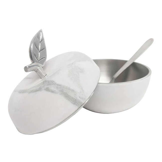 White Marble Apple Jam Jar - Alternative Metal - 5" D x 5" H